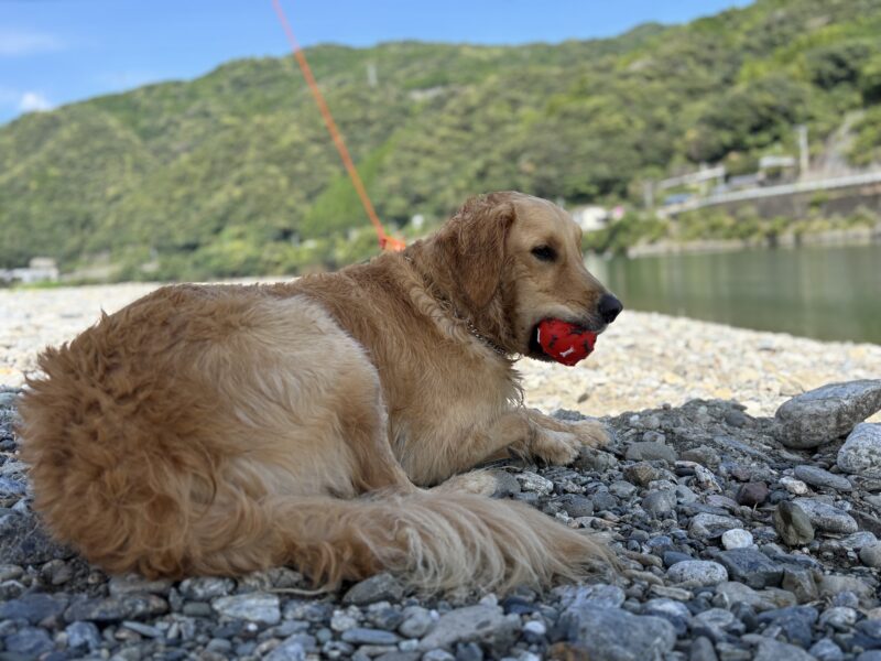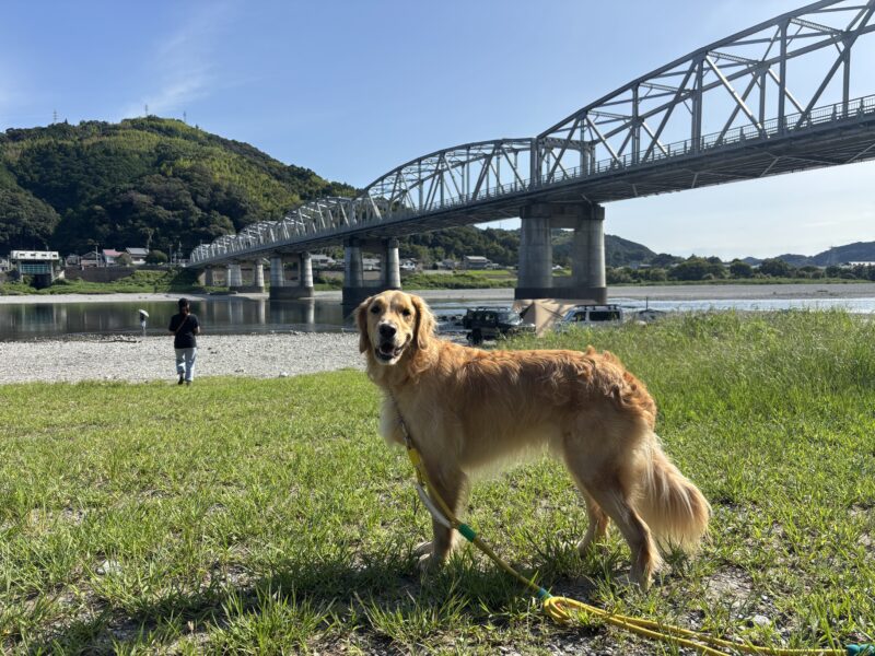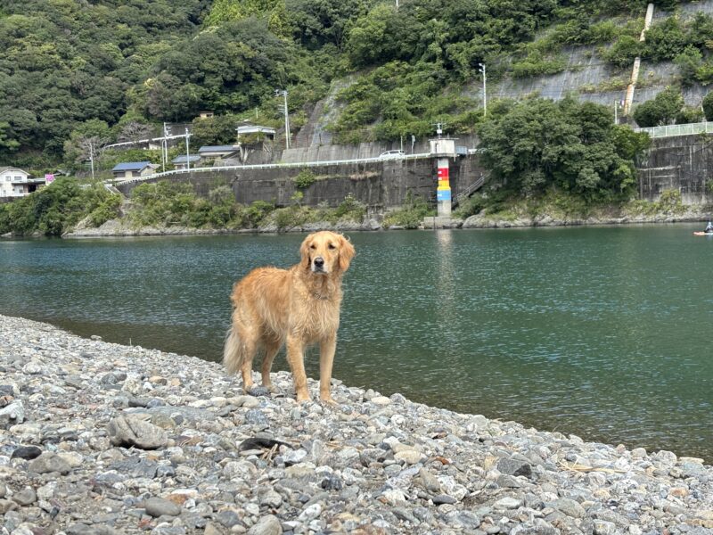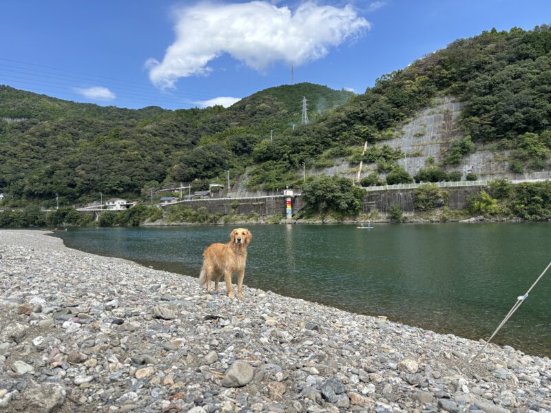 9月、高知県吾川郡いの町の仁淀川下流で、ゴールデンレトリバーのピースと日帰りBBQをしてきました。