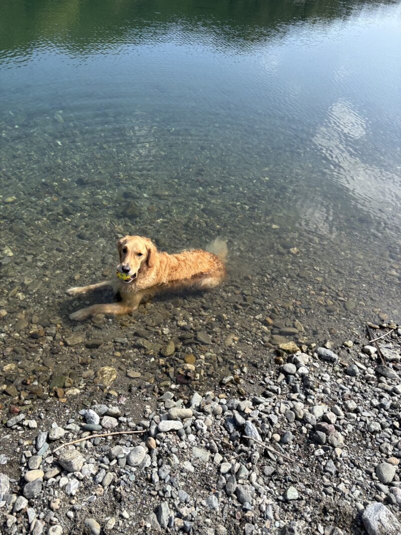 川を見つけると、「行っていい?」とでも言いたげに尻尾をブンブン振っていました。